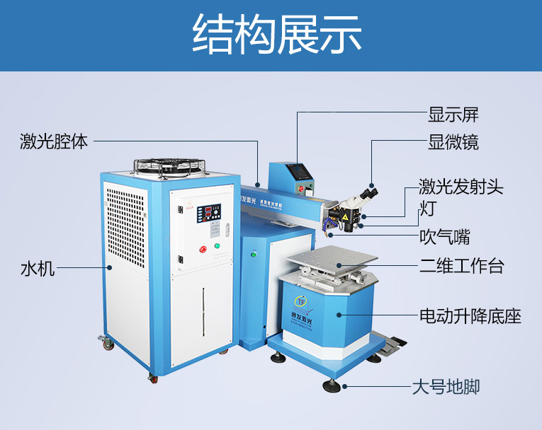 • 通發激光TFL-300Ⅲ大功率模具激光焊機,比普通激光焊機修復模具效率快1.5-2倍,適合0.3-0.6激光焊絲,大功率更適合修復鈹銅模具、鋁模等較難修復的模具。